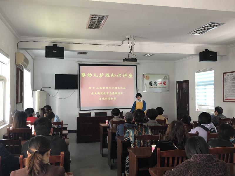 經(jīng)過多方溝通協(xié)調(diào)和聯(lián)系,4月29日上午,池州購物中心非百商戶哈昵寶貝同府學社區(qū)新時代文明實踐站、清風街道教育志愿服務隊、清風街道婦聯(lián)聯(lián)合開展了“嬰幼兒護理知識”公益講座活動,活動吸引了30余位爸媽或爺爺奶奶參加。講座中,哈昵寶貝嬰幼兒護理技術(shù)督導朱慧玲從新生兒洗澡洗頭小知識、母乳喂養(yǎng)優(yōu)點及喂養(yǎng)技巧、新生兒護理小常識、嬰幼兒穿衣小常識等方面為參加人員普及專業(yè)知識。
