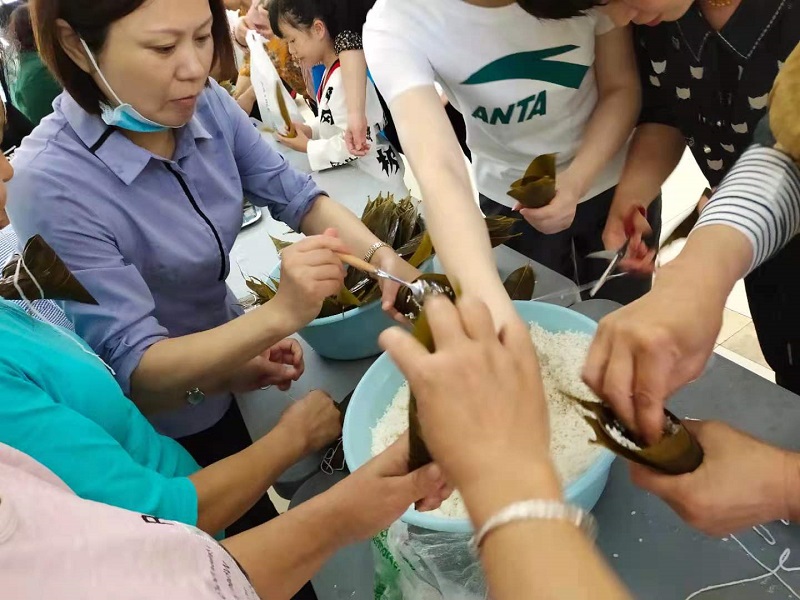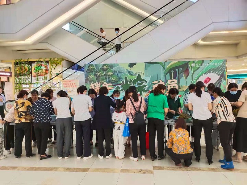 6月13日上午10點(diǎn),包粽子活動在商場一樓中庭準(zhǔn)時開始。工作人員布置好現(xiàn)場,拿出提前準(zhǔn)備好包粽子的所需物料--雪白的糯米、香甜的蜜棗、青青的箬竹葉和棉繩......參加活動的顧客把現(xiàn)場圍得水泄不通,有的已經(jīng)按捺不住想一顯身手了。大家一邊包粽子,一邊你一言我一語地討論著包粽子的方法和技巧,有的注重細(xì)節(jié),追求美觀;有的講究效率,速度飛快;還有幾個包得不太熟練的新手,在一旁認(rèn)真學(xué)習(xí),她們是現(xiàn)場拜師學(xué)藝來了。不一會兒,一個個有棱有角的粽子就擺了滿滿一桌,那各式各樣可愛的小粽子,讓人真不舍得煮來吃。