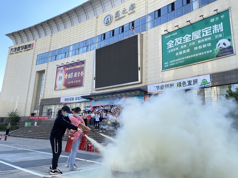 6月22日、23日早上8點10分,池州購物中心分兩個班次在正廣場組織員工開展消防滅火實戰(zhàn)演練。