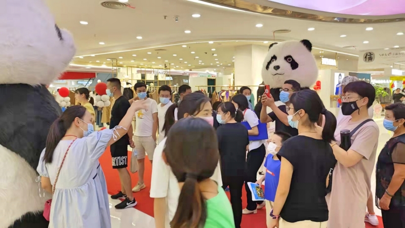 活動期間品牌大放價,10月1日-3日購物滿額即可參加轉(zhuǎn)盤抽獎活動。10月4日-7日,開展1000份爆米花免費(fèi)送,松甜香脆的爆米花香飄四溢,深受小朋友的喜愛。除常規(guī)促銷活動外,豐富的文化活動必不可少,二樓女裝重裝開業(yè),精彩的舞獅表演振奮人心;女裝靜態(tài)展,生動展現(xiàn)品牌個性和亮點;國慶當(dāng)天,全體員工參加國慶72周年升旗儀式,弘揚(yáng)愛國主義精神,激發(fā)員工的愛國熱情;還有親子集市、秋季新品發(fā)布會、街舞快閃、小小灌籃高手、飛鶴親子嘉年華等,每場活動都人氣爆滿。每天的超級熊貓大巡游,憨態(tài)可掬的網(wǎng)紅大熊貓,倍受追捧,大家爭相拍照合影,定格美好瞬間。