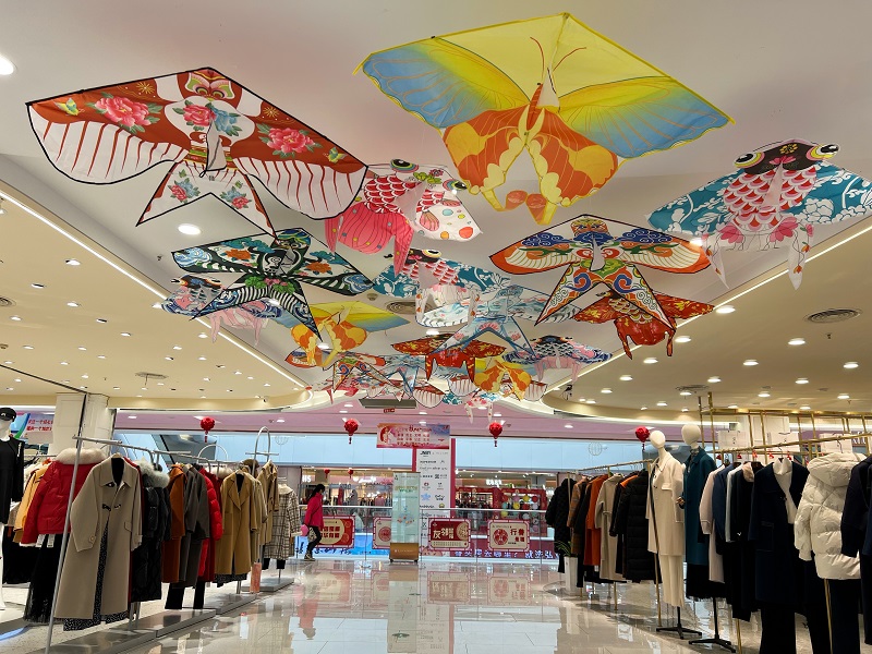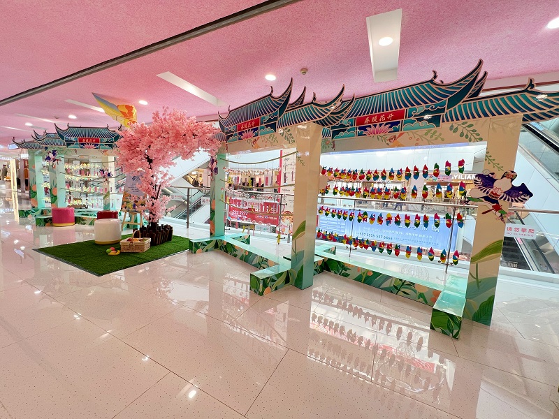 大門和入口處均已從熱鬧的春節(jié)布景更換為象征著生機與活力的翠色,入口處還懸掛上了各式各樣的風箏,不禁讓人一進門就覺眼前一亮。二樓的打卡點在經過了風車、風鈴和風箏一系列代表春季物品的巧妙布置后,讓顧客驚喜贊嘆不已,紛紛上前拍照。