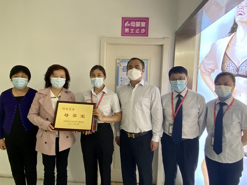 5月20日下午,池州市總工會(huì)領(lǐng)導(dǎo)一行為池州購(gòu)物中心“陽光家園---母嬰室”授牌。