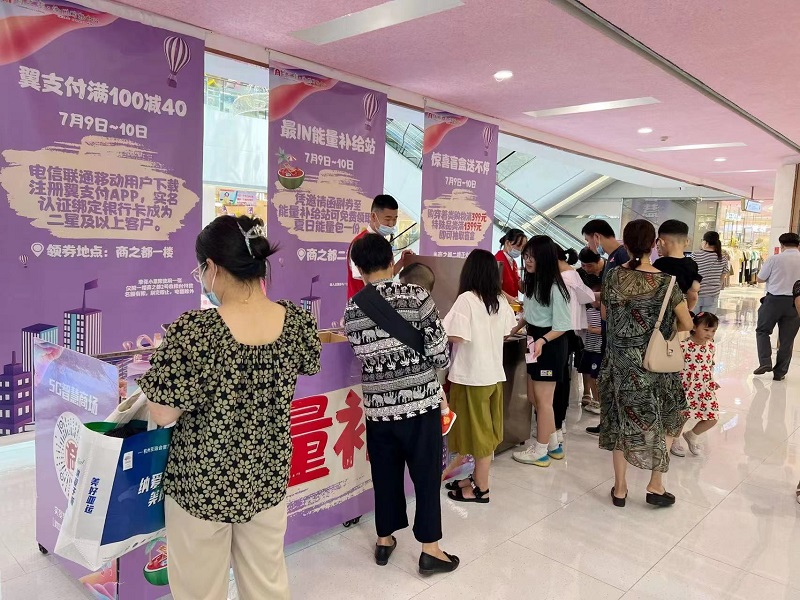 此次年中慶,所有商品在原有折扣的基礎(chǔ)上憑邀請(qǐng)函再享滿減,促銷活動(dòng)也精彩紛呈?!澳芰垦a(bǔ)給站”為顧客精心準(zhǔn)備了冰飲、零食包、水果切等,憑邀請(qǐng)函免費(fèi)領(lǐng)取?!俺槊ず小比藲獗铮ず袃?nèi)有品牌手表、空氣循環(huán)扇、榮耀藍(lán)牙耳機(jī)等禮品,為購物顧客再添驚喜。還有“線上商城1元砍價(jià)”,“熱帶水果節(jié)”,“翼支付滿減等”活動(dòng),可與邀請(qǐng)函優(yōu)惠同享,讓顧客應(yīng)接不暇。此次年中慶2天銷售超同期6.7%,打響下半年銷售第一槍。