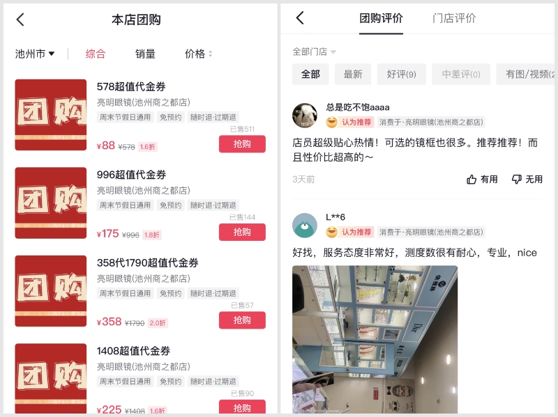 隨著客流逐漸恢復(fù),池州購物中心眼鏡專柜適時(shí)推出了“抖音團(tuán)購”活動(dòng)。在抖音平臺上線各類超值代金券,低至88元可配防藍(lán)光眼鏡,套餐含免費(fèi)驗(yàn)光、鏡盒、防霧鏡布、清洗液,價(jià)格優(yōu)惠,各種款式各種風(fēng)格自由選擇,線上下單享優(yōu)惠,線下到店體驗(yàn)還可同享免費(fèi)清洗、免費(fèi)維修等增值服務(wù)。同時(shí)還與當(dāng)?shù)鼐W(wǎng)紅主播合作推廣宣傳,短視頻生動(dòng)呈現(xiàn)店內(nèi)環(huán)境、超值服務(wù)和優(yōu)惠活動(dòng),吸引了諸多消費(fèi)者到店選購,并紛紛給予了好評。1月份線上預(yù)售達(dá)800多件,活動(dòng)期間店內(nèi)人氣滿滿,活動(dòng)獲得可喜收獲。