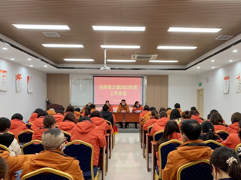 2月13日下午,池州購物中心召開2023年度工作會議,購物中心全體員工及促銷員代表參加了會議。