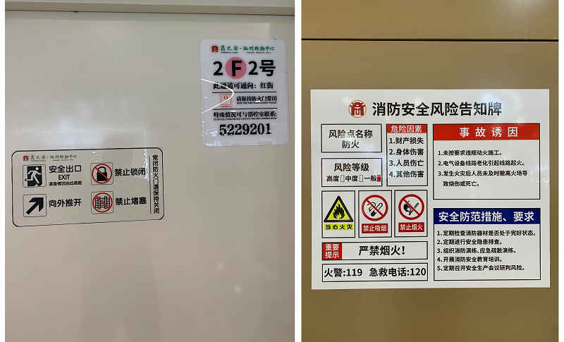 池州購(gòu)物中心消防維保單位的汪師傅在維保時(shí)看到我們張貼的標(biāo)識(shí)牌后說(shuō):“你們的標(biāo)識(shí)非常醒目,通道標(biāo)識(shí)上標(biāo)注了通道可以通向的場(chǎng)外位置和緊急聯(lián)系電話,緊急情況下很有用,消防風(fēng)險(xiǎn)告知牌上標(biāo)注了事故誘因和防范措施,我們?cè)谄渌麊挝欢紱](méi)有看到過(guò)這樣做的,你們確實(shí)是在用心的做事?!?。