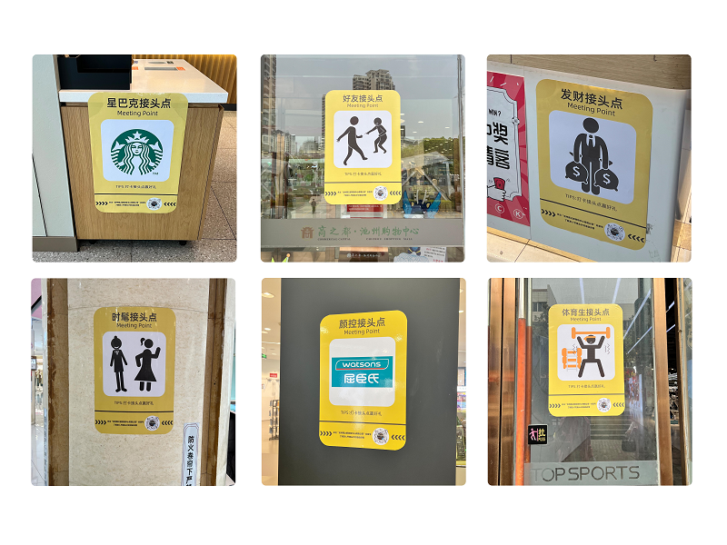 “我找到啦,快幫我拍。”一位女生已經(jīng)在二樓正大門前擺好POSS,拉著她的好友給她拍照;“喂,我在紅街大門E人接頭點這兒等你?!蹦贻p小伙正在和他好友打電話相約接頭點見面。池州購物中心聯(lián)合鼎街餐飲內(nèi)外共設(shè)置了19個接頭點,吸引不少顧客駐足拍照打卡分享社交媒體。