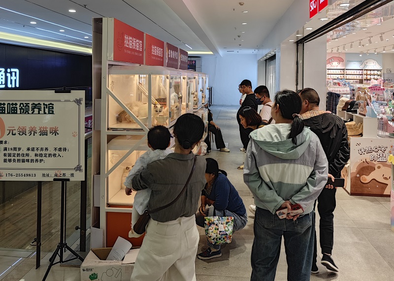 寵物認(rèn)養(yǎng)是目前較為流行的一種售養(yǎng)模式,開業(yè)當(dāng)天,寵物柜中小貓們的一舉一動吸引了很多顧客駐足觀看,小貓們似乎也感受到了這份關(guān)注,它們或是好奇地四處張望,或是大膽地與顧客互動,柔軟的小爪子輕輕觸碰著玻璃壁。工作人員為顧客一一講解詳細(xì)的寵物信息和養(yǎng)護(hù)指導(dǎo)以及認(rèn)養(yǎng)流程。