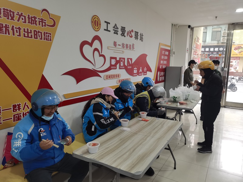 1月7日,正值傳統(tǒng)臘八節(jié),池州購物中心聯(lián)合池州市委社會工作部、市場監(jiān)督管理局和老鄉(xiāng)雞商之都星光大道店,在池州商之都工會驛站內(nèi)舉辦了一場充滿溫情的送臘八粥活動,給外賣騎手小哥、環(huán)衛(wèi)工人等戶外勞動者送上臘八粥,為池城寒冷冬日添上了一抹暖色。