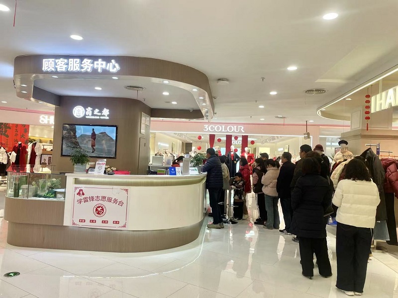 只見二樓谷邦女裝櫥窗里的模特展示著當(dāng)下流行的新年穿搭,麥笈女裝店鋪內(nèi)精美的春聯(lián)和寓意吉祥的福字錯落有致地張貼著,特別是印象樹女裝DP點旁陳列的春節(jié)許愿牌吸引了不少顧客停下腳步,用手機記錄2025年對家人的這份心愿,希望家人新年里年年有勝意。