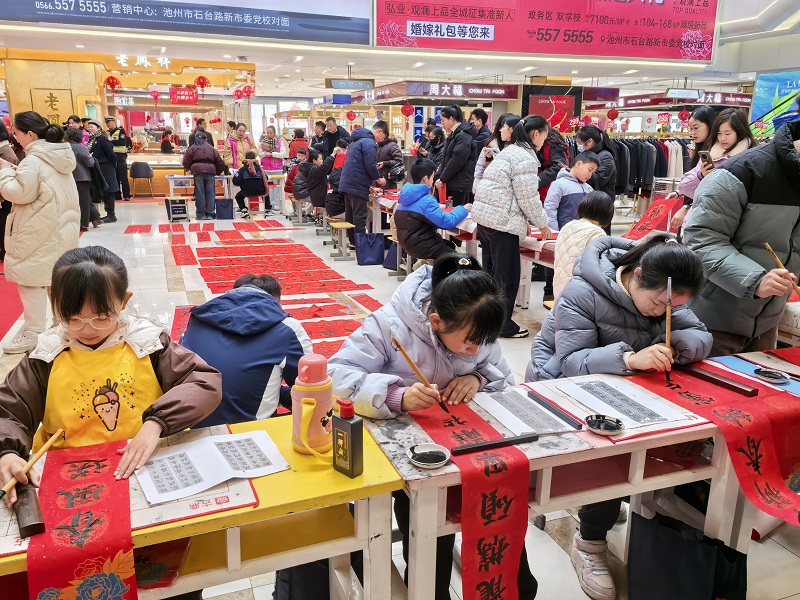 福贈春聯(lián)祈平安,奮筆揮毫迎新春。在2025年春節(jié)即將到來之際,為營造喜慶祥和的文化氛圍,弘揚中華傳統(tǒng)文化。 1月20日上午,池州購物中心與市婦聯(lián)、市民政局、市婦女兒童活動中心等單位開展“祥聯(lián)納新福 墨香暖社區(qū)”活動。