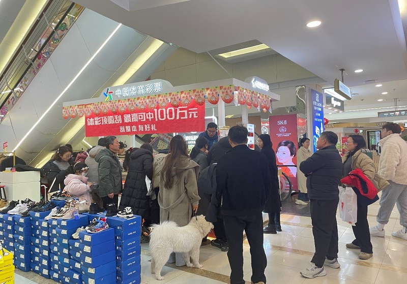 春節(jié)期間,池州購(gòu)物中心里一片喜慶。體育彩票銷售點(diǎn)前,更是人頭攢動(dòng),熱鬧非凡。
