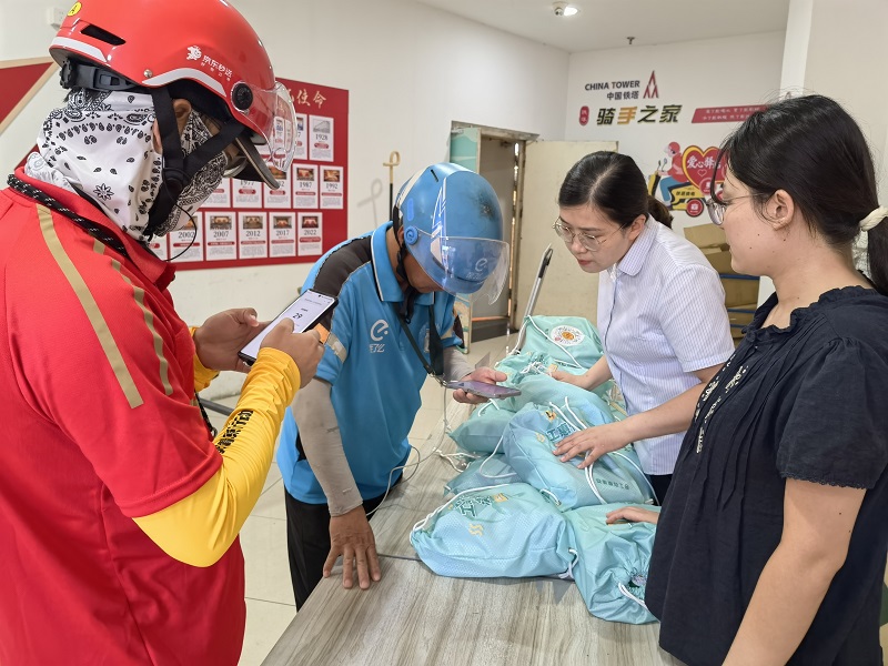 活動期間,池州購物中心為外賣小哥、環(huán)衛(wèi)工人等戶外勞動者精心準備了西瓜、礦泉水、冰袖以及清涼大禮包等防暑降溫物品。池州市總工會也大力支持,送來3000瓶礦泉水,表達了對池州商之都工會驛站持續(xù)用心服務戶外勞動者工作的充分認可。這些物資不僅緩解了戶外勞動者在高溫工作中的口渴與炎熱,更讓他們感受到了來自社會各界的尊重和關愛。