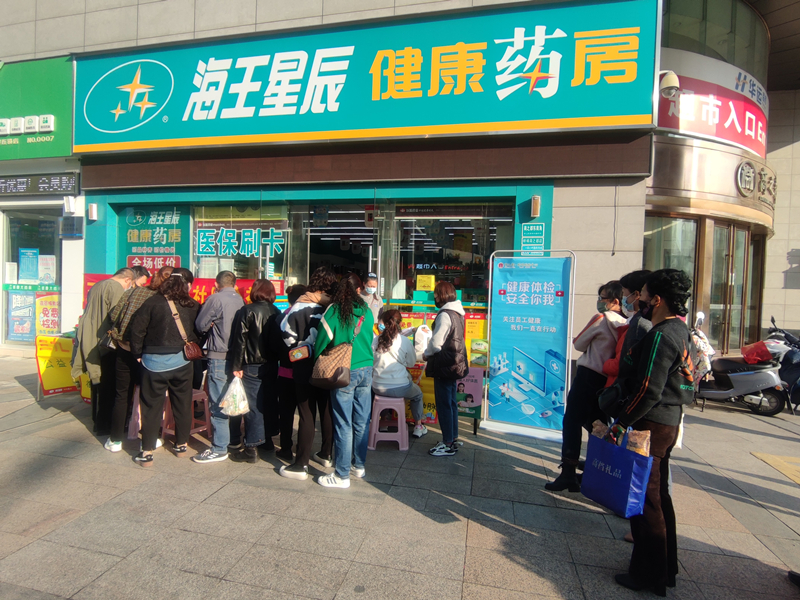 蚌埠購物中心堅持以人為本,關(guān)愛員工的身體健康。在“世界保健日”來臨之際,于10月12日早晨,在海王星辰藥店門口,組織了員工健康體檢,公司全體工作人員與賣場促銷員參加了此次體檢。